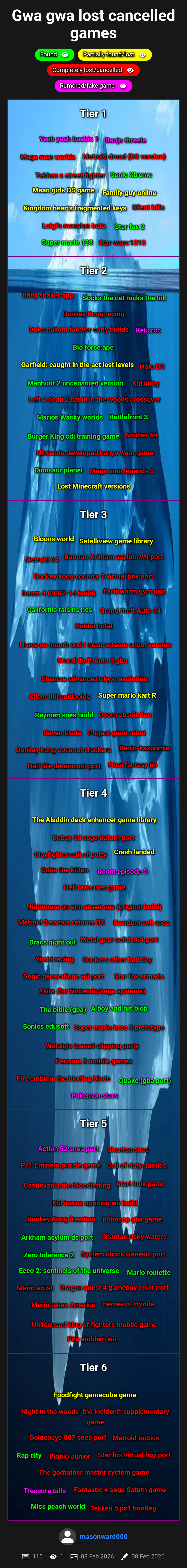 My lost, cancelled,or just rumored games chart...> 08-Feb-2026 04:05 5M