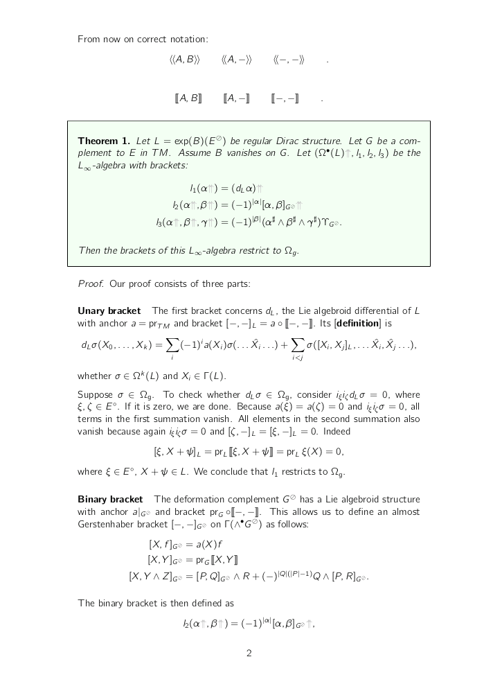 Have a look back at my notes and notice the parts that are in bold, such as [definition, p. 29] or [Section 5. Infinitesimal deformations, p. 23]. These are links to papers, books, … and when I click them, my pdf viewer opens the file at the corresponding page. This makes it easy to get back in the flow reading old notes: I don’t lose time searching for certain definitions of concepts, I can just click the link and get back on track immediately.