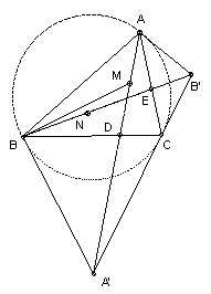 G5. ABC is an acute angled triangle. The tangent at A to the circumcircle meets the tangent at C at the point B'. BB' meets AC at E, and N is the midpoint of BE. Similarly, the tangent at B meets the tangent at C at the point A'. AA' meets BC at D, and M is the midpoint of AD. Show that ∠ABM = ∠BAN. If AB = 1, find BC and AC for the triangles which maximise ∠ABM.
