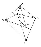 G6. ABCD is a convex quadrilateral. The perpendicular bisectors of AB and CD meet at Y. X is a point inside ABCD such that ∠ADX = ∠BCX < 90o and ∠DAX = ∠CBX < 90o. Show that ∠AYB = 2 ∠ADX.