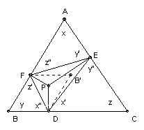 So we may assume that E is not any point of B'DF. Hence either x' < y or z" < y. Similarly, y' < z or x" < z, and z' < x or y" < x. Without loss of generality we may assume y' < z (there is symmetry between y' and y"). So looking at triangle AEF, z" > y. Hence x' < y. So looking at CDE, y" > x. Hence z' < x. Looking at BDF, x" > z. So x' < y < z", y' < z < x", and z' < x < y".
