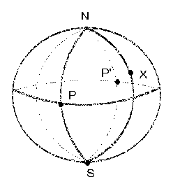 Suppose the points are such that the distance between any two is at least √2. Then any two must subtend an angle of at least 90o at the center of the sphere. We claim that two of the points must be at opposite ends of a diameter. Let S be one of the points. Take it at the south pole. So suppose that none of the points is at the north pole N. If the other 4 points all lie on the equator, then they must be equally spaced and so a pair lie at opposite ends of a diameter as claimed.