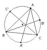 ∠A'C'C = ∠A'AC = ∠A/2, and ∠B'C'C = ∠B'BC = ∠B/2, so ∠A'C'B' = ∠A/2 + ∠B/2. The circumradius is the same, so area A'B'C' = ½ R2(sin(A+B) + sin(B+C) + sin(C+A) ). Thus we have to show that 4 (sin(A+B) + sin(B+C) + sin(C+A) )3 ≥ 27 (sin 2A + sin 2B + sin 2C).