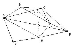Take P so that AFE and PDE are similar. [So take ∠PDE = ∠AFE and ∠PED = ∠AEF. Note that you need to take the right point - P' fails below.] So EF/ED = EA/EP. Also ∠DEF = ∠DEA + ∠AEF = ∠DEA + ∠PED = ∠PEA (this is where we need P on the opposite side of DE to A). Hence triangles DEF and PEA are similar. So FD/EF = AP/EA (*).