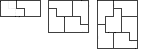 Consider the 5 x 2, 5 x 4 and 5 x 6 arrangements below. Call them A2, A4 and A6. A2 can be reflected to give 2 arrangements, A4 can be reflected to give 2 arrangements, and A6 can be reflected and rotated to give 4 arrangements. Let Sn be the total number of arrangements for a 5 x 2n rectangle. Then we have S1 ≥ 2. S2 ≥ 6 (22 derived from using two A2s and 2 from an A4). S3 ≥ 20 (23 by using three A2s, 22 by using an A2 above an A4, 22 by using an A2 below an A4, and 4 from an A6). So Sn ≥ 2.3n-1 for n = 1, 2, 3. We now use induction on n to prove that this holds for all n.