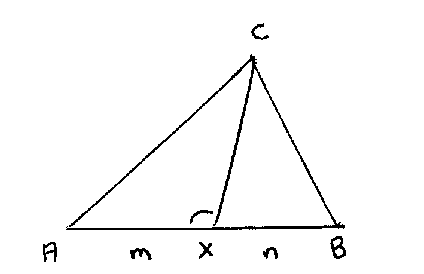 We show first that if AX/XB = m/n, then (m+n) cot AXC = m cot B - n cot A. Let the altitude from C be CF length h. Then AF = h cot A, FX = h cot AXC (negative), BF = h cot B. So AX = h cot A + h cot AXC, BX = h cot B - h cot AXC. Then n AX = m BX gives the result.